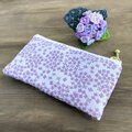 紫陽花柄の畳縁で作ったフェミニンなミニポーチです。