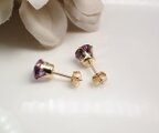 6mmスクエア型/宝石質アメジストAAA(14kgf/ファセットカット)☆4本爪ピアス