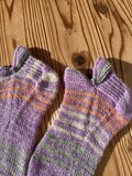 ちなみに竹串か?!ってくらい細い針で編んでるので意外と薄いです。普通の靴下と同じように履けますよ♪