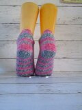 本日届きました。 写真で見た以上に温かで素敵な色合いの靴下でした。 締め付け感なくさらっと履けて初めての感触で気に入りました。 これはまた欲しくなりますね! おまけも可愛く、ありがとうございました。