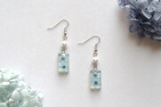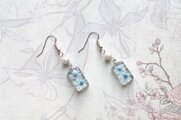レジンアート お花とコットンパールのピアス〈ライトブルー〉