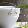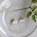 天然石クリスタルクォーツ さくらんぼピアス(イヤリング)|14Kgf アレルギー対応 小粒 揺れる 透明
