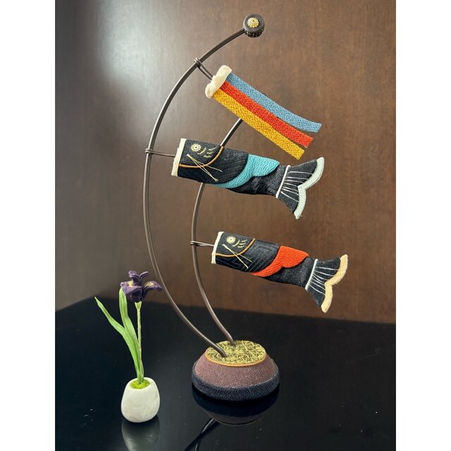 鯉のぼりを一匹にして花菖蒲を土台に乗せる形。
