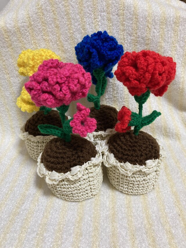 毛糸で編まれているので枯れないのはもちろん、毎日の水やりなども必要なく、