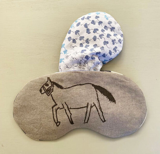 上質な天然素材を使って布合わせしたハンドプリントのカバー付きあづきとラベンダーハーブが入ったピローです。 (あずきとハーブはご注文いただいてからお詰め致します。)
