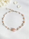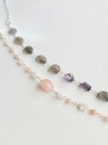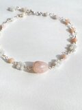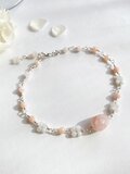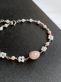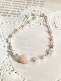 今回は脇役にムーンストーンとピンクオパール、金具はシルバーカラーをお選びして、白とピンクの淡く可愛らしい色調にしてみました。