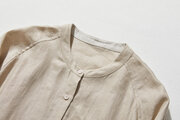 ほどよく品のある、大人に似合うロングシャツワンピース リネン100% ベージュ 240324-1