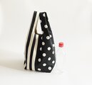 白黒ドット ストライプのマルシェバッグ ドット ブラック エコバッグ