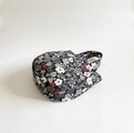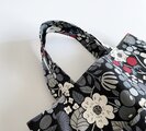 北欧風フラワー&木の実*ラウンド型バッグ ブラック 外ポケット 綿麻キャンバス