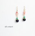 G95【春だね♪】チェリークォーツとブルーサンドストーンのピアス(パーツ変更可能)