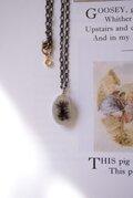 植物をそのまま閉じ込めたような幻想的な模様が印象的なデンドリティックアゲートのペンダントです。模様を損なわないようホワイトカラーのポリマークレイで仕上げております。植物の樹木のような情景を持つこのストーンは岩石の中にマンガン系の鉱物などが染み込むことで模様が作り出されてます。和名では「忍石(しのぶ石)」と呼ばれ、自然が創り出した模様が時には風景画と重なる事もあるため「風景の石」「ランドスケープ」と呼ばれる事もあります。