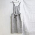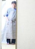 オオノ食材店の店主、料理するひと紫都香さんにまず試作品を着てもらって、意見を聞きながら修正していった、MMMMADE とのコラボリネンエプロン。