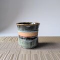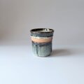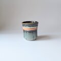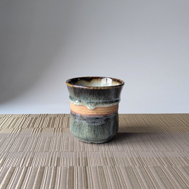 カップの胴体に一部線を施し、あえて釉薬を塗らない所をつくってあります。