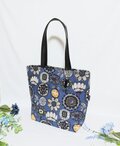 北欧の森柄ネイビーの綿リネン生地の肩掛け出来るビックバックです。