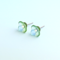 淡い緑と青のグラデーションが美しい小さなお花のピアスです。