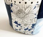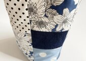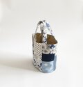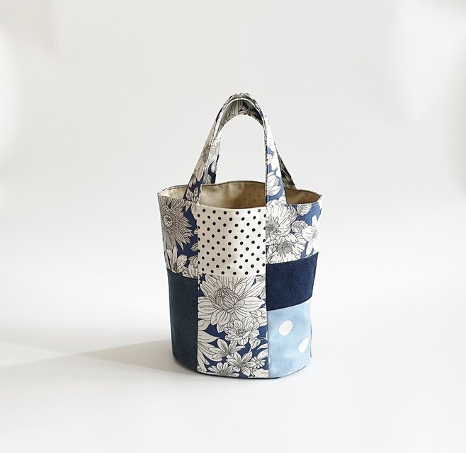デニムのパッチワークバケツ型バッグ ボタニカルフラワー ドット