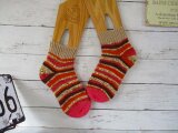 本日届きました。 写真で見た以上に温かで素敵な色合いの靴下でした。 締め付け感なくさらっと履けて初めての感触で気に入りました。 これはまた欲しくなりますね! おまけも可愛く、ありがとうございました。