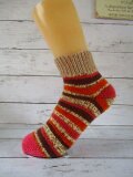 ドイツのブランド Schoppel-Wolle Admiral R Druck 1459 & Opal uni 5189 キャメル & 9940 フェアリーピンクで編んスニーカーソックスです。