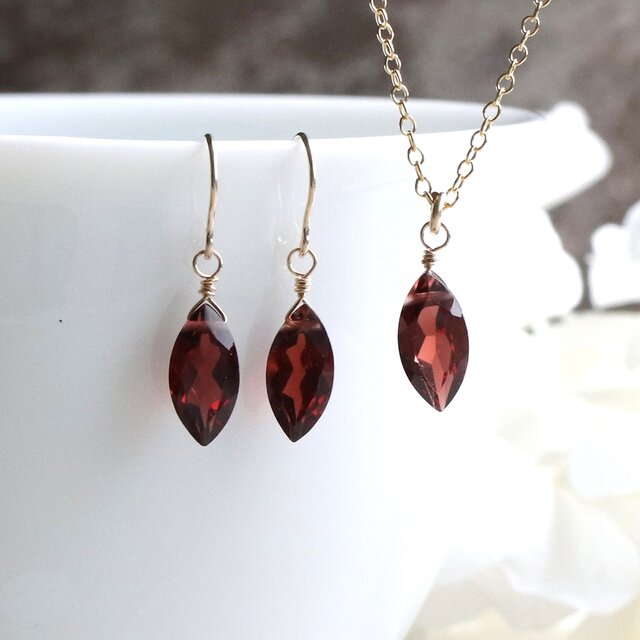 モザンビークガーネット ピアス/イヤリング+ネックレス セット|天然石|14Kgf — Essence —