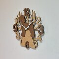 下地の木と飛び出ているワンちゃんと数字はそれぞれ、レーザーで加工後、接着して立体感を表現した高級感ある仕上がりになっています。