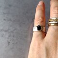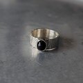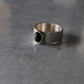 黒い天然硝子にちょこんと灰色のクリストバライトが入り込んだスノーフレークオブシディアンをjuhiシルバーリングに仕立てました。