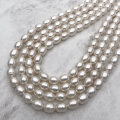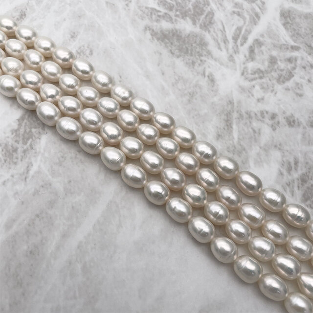 淡水パール 真珠 ライス 雫 しずく ドロップ 小粒 中粒 ホワイト系 半連20cm 7mm~8mm*6mm~6.5mm