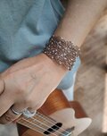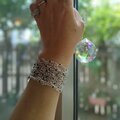 金属光沢のある、メッシュに編まれたバングルです。