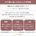 繊細で軽やかな繊維を立体的に絡み合わせたもの(不織布)を基布としているため、とても軽量で、傷や水にも強く、水に濡れてもサッと一拭き、お手入れも簡単。手触りもとてもいい素材です。雨の日も安心して持っていただけます。