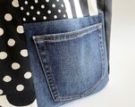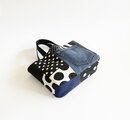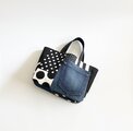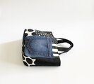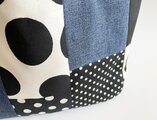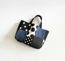 デニムのパッチワークバッグ ドット チェック モノトーン