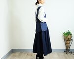 トップ部分のデニムカラーとボトム部分のリネンの紺色が相性良好です。