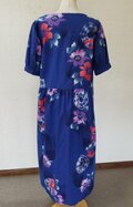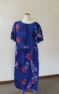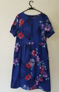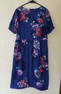 ブルー地色に、オレンジ、紫、ピンク等で花が描かれています。
