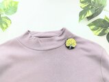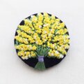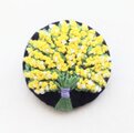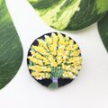 ネイビーの綿生地に可愛らしい黄色のミモザの花束をモチーフにして刺繍ブローチにしています。