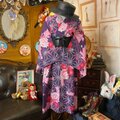 【 和洋折衷 浴衣 リメイク ワンピース ドレス レトロ 古着 和 モダン 素敵な花柄×ピンク×パープル系 W-245 】