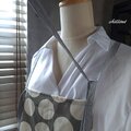 北欧テイストの大き目ドットに肩紐とポケットにシンプルなグレーを。