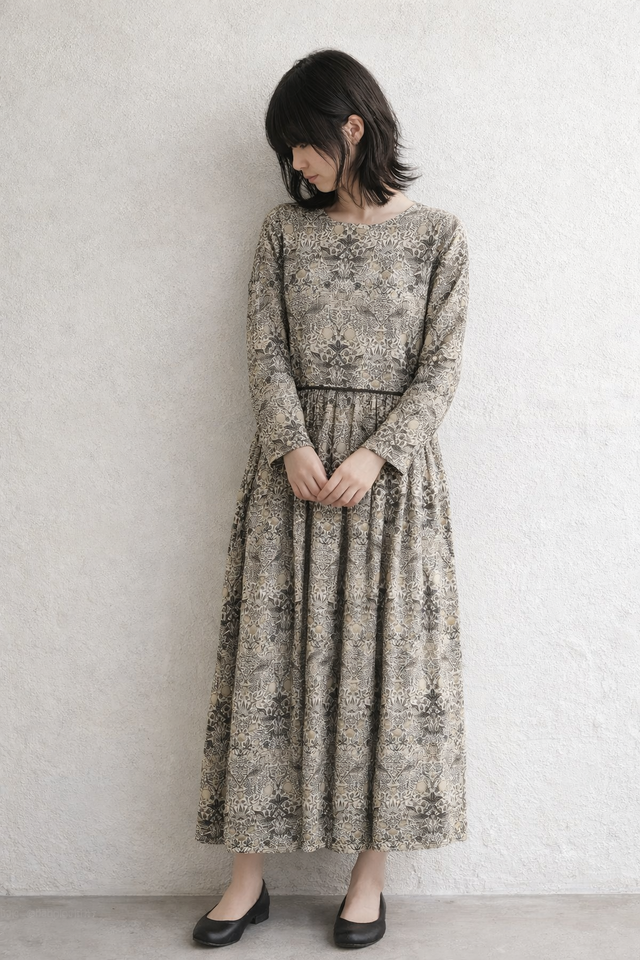 ウイリアムモリスの名作いちご泥棒のワンピースが完成致しました