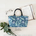 ⭐️4点売れました⭐️《ウィリアムモリス アネモネ》 2way ネイビー 紺 花柄 小柄 革 手提げ ショルダーバック
