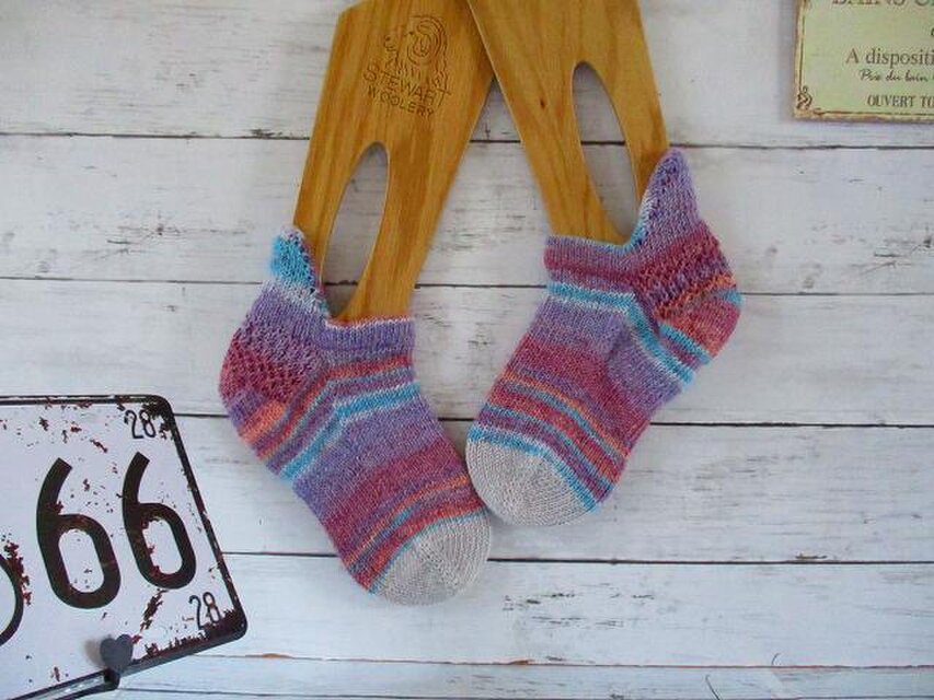 ドイツのブランド Opal Cotton Premium 9844 Wehendes Abendkleid & KFS 213 コットングレーと名前のついている糸で編んだスニーカーソックス(タブ付き)です。