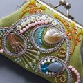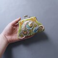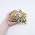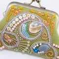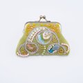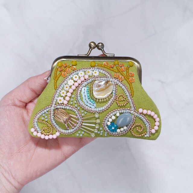ビーズ刺繍の小さながま口 6 グリーン マチなしポーチ