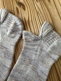 ちなみに竹串か?!ってくらい細い針で編んでるので意外と薄いです。普通の靴下と同じように履けますよ♪