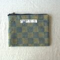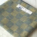 藍染めの紺色をたて糸に玉ねぎで染めた黄色をよこ糸に市松状のチェックに織りました。