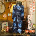 和洋折衷 浴衣 リメイク ワンピース ドレス 帯サッシュベルト レトロ 古着 和 モダン 扇子×藍色×青×水色 系 W-258