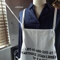 ホワイト×ブラックステンシルの存在感のあるおしゃれなエプロンをどうぞ。
