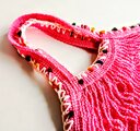 ポンポン毛糸の手編みの飾り ネットバッグ ピンク マルシェバッグ メッシュバッグ エコバッグ おもちゃ入れ 野菜入れ