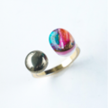 【大人エスニック C】天然石 ターコイズ フリーサイズ 差し色 指輪 オープンリング 一点物 青 赤 カラフル