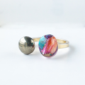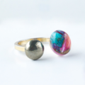 ターコイズと、メタリックな輝きが美しいパイライトの二つの天然石を使ったリングです。