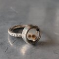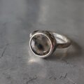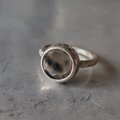 水晶が成長する過程で1部がスモーキークォーツに変化した面白い表情のダルメシアンクォーツをシルバーリングに仕立てました。