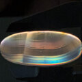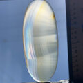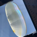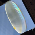 一見普通の地味なアゲートですが、直射日光、もしくは暗めの室内で光源にかざすと、特定の角度で美しい虹色の層が見られます。