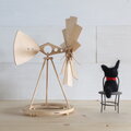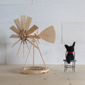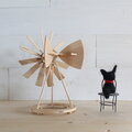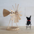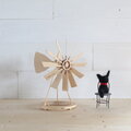 メカニックな風車なのにあたたかい木でできていることに感動しました。お手仕事ってすごい!