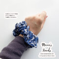 ⭐️《イタリア製 リネン》 おしゃれな ペイズリー 青 x グレー ナチュラル 花柄 シュシュ ヘアゴムです♪ ::::3点売れました::::