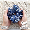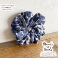 ⭐️3点売れました⭐️《イタリア製 リネン》 おしゃれな ペイズリー 青 x グレー ナチュラル 花柄 シュシュ ヘアゴム